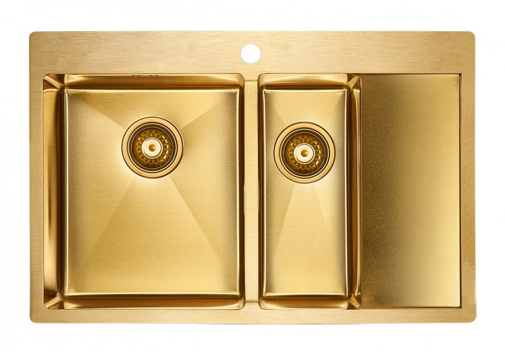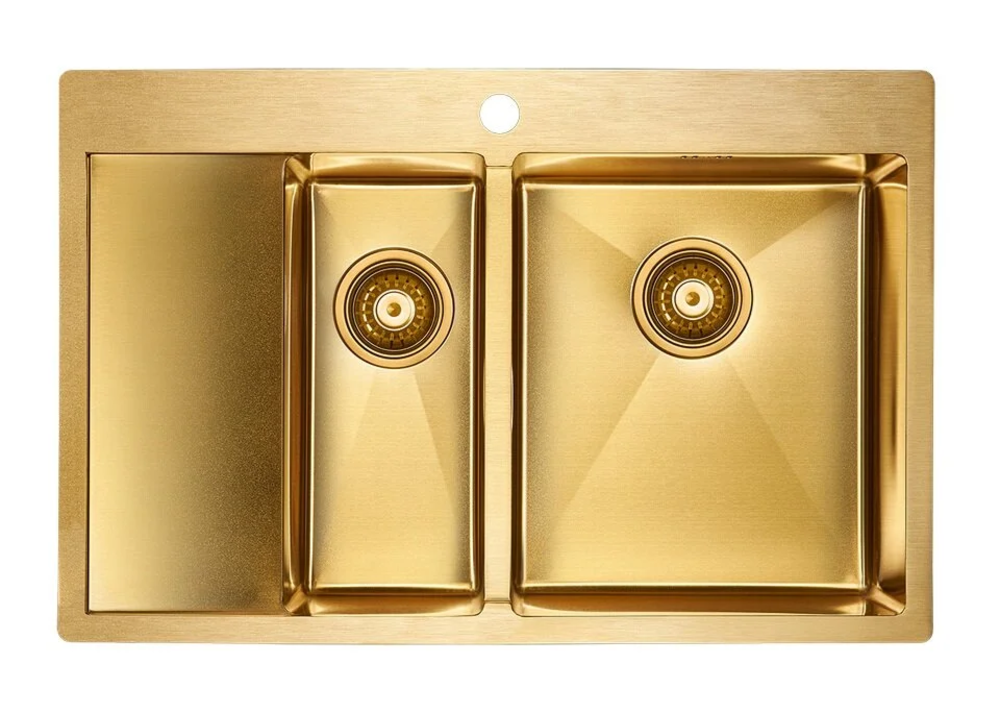 Мойка кухонная Paulmark Liga PM227851-BGL/R, 78 см, брашированное золото, левая/правая