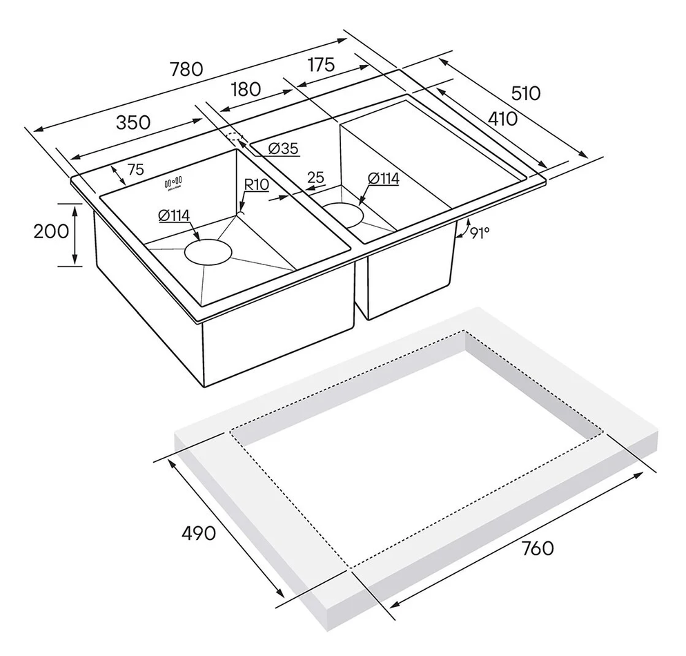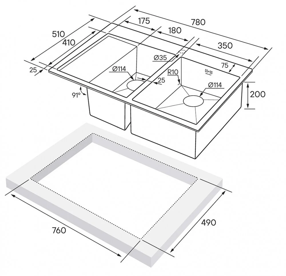 - Корзинчатый вентиль, сифон, слив-перелив: в комплекте