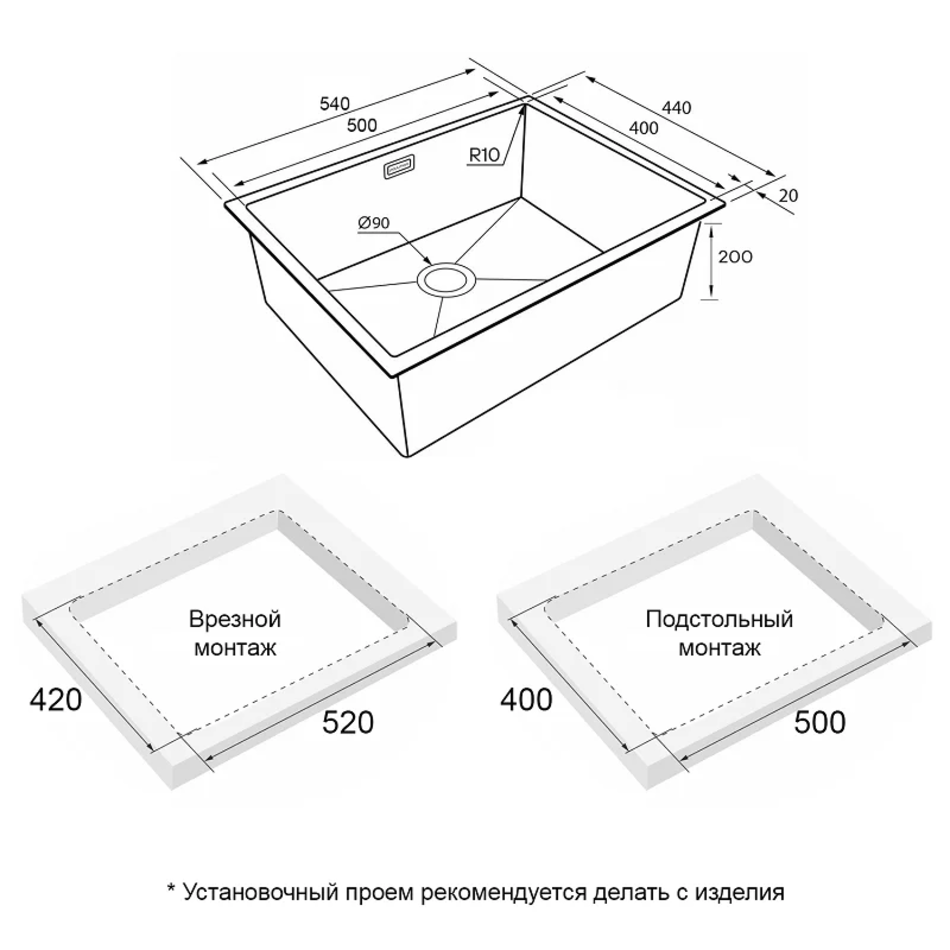 Мойка кухонная из нержавеющей стали NEXT 54 UNI.