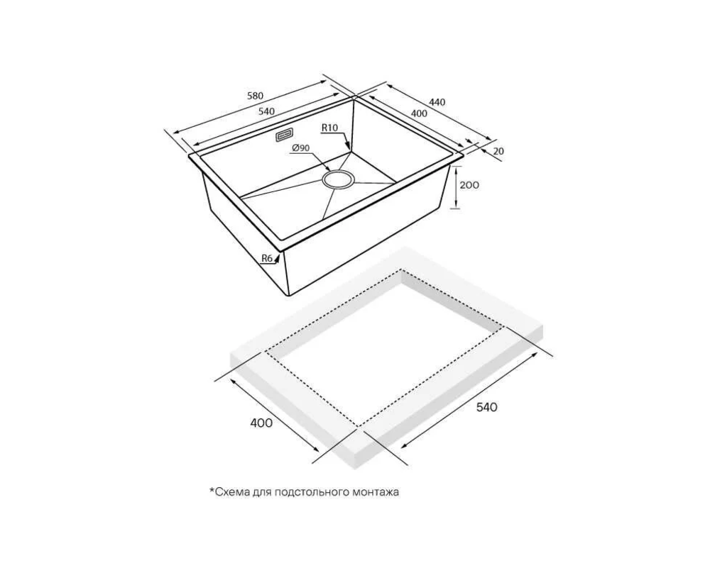 Мойка кухонная Paulmark Next-Skew-580, PM885844-GM, вороненая сталь