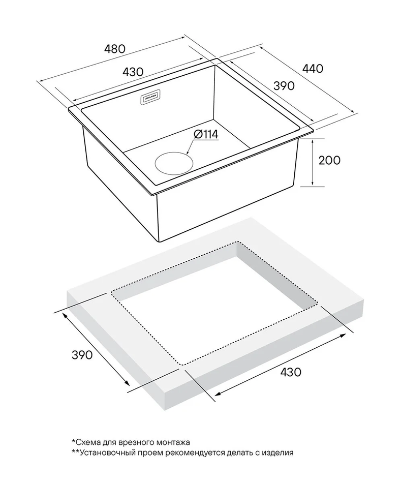 Мойка кухонная Paulmark Weser PM804844-GM, 48 см, вороненая сталь