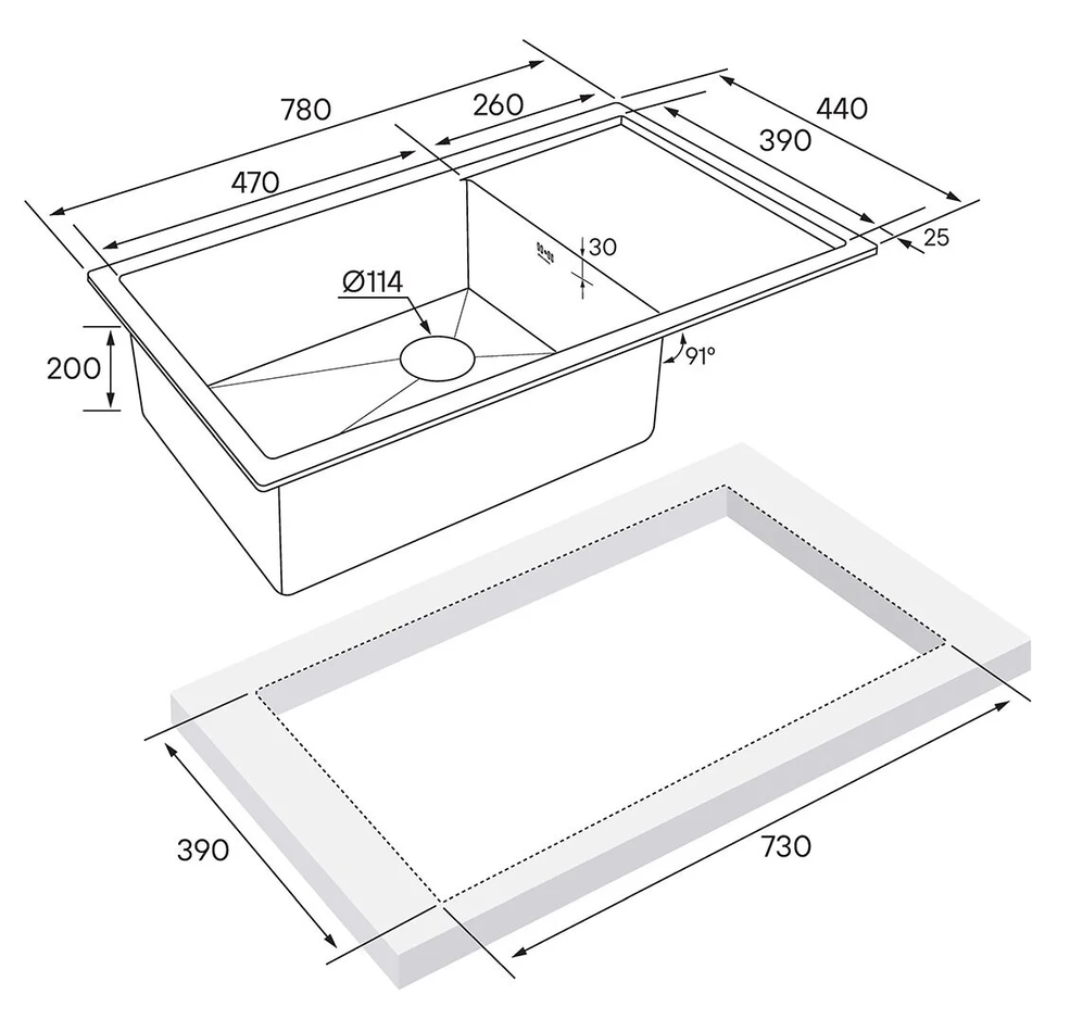 - Отверстие под смеситель: нет