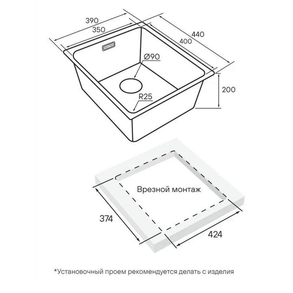 - Размер чаши (ДхШхВ): 350 х 400 х 200 мм
