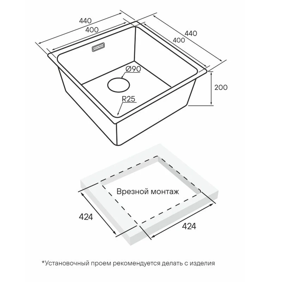 - Тип монтажа: врезной в столешницу, подстольный