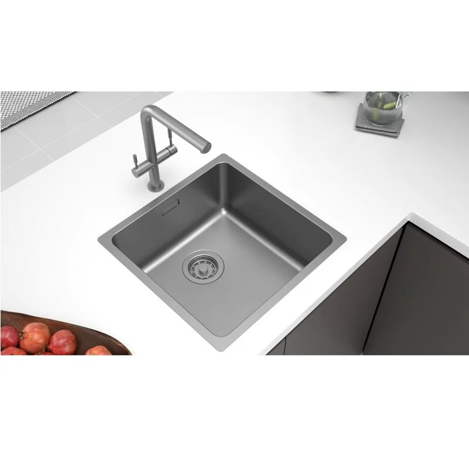 Мойка кухонная Paulmark Yuni YU44-GM, 44 см, нержавеющая сталь, PVD покрытие, цвет вороненая сталь