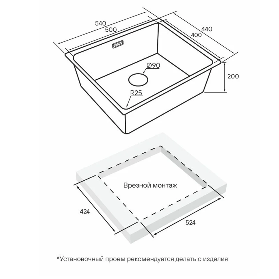 - Тип монтажа: врезной в столешницу, подстольный