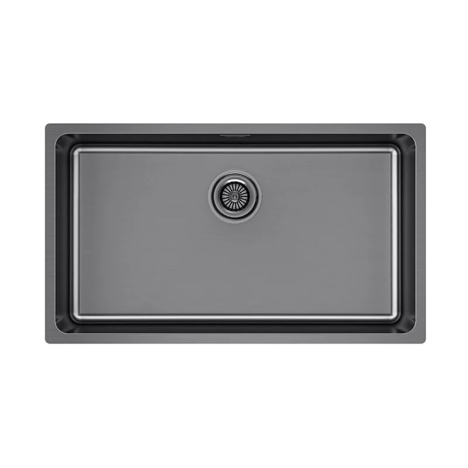Мойка кухонная Paulmark Yuni YU76-GM, 76 см, нержавеющая сталь, PVD покрытие, цвет вороненая сталь