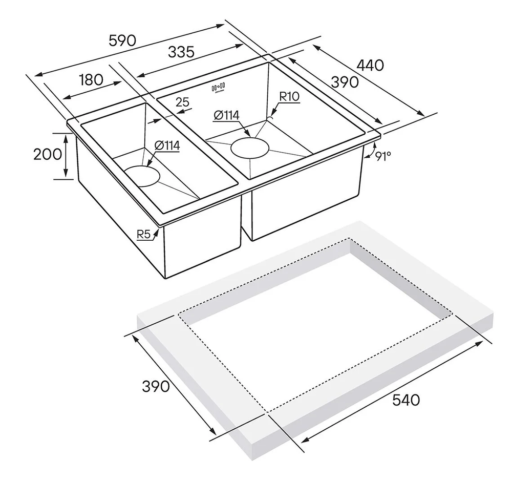 - Монтаж: в один уровень со столешницей / встраиваемый сверху / встраиваемый снизу