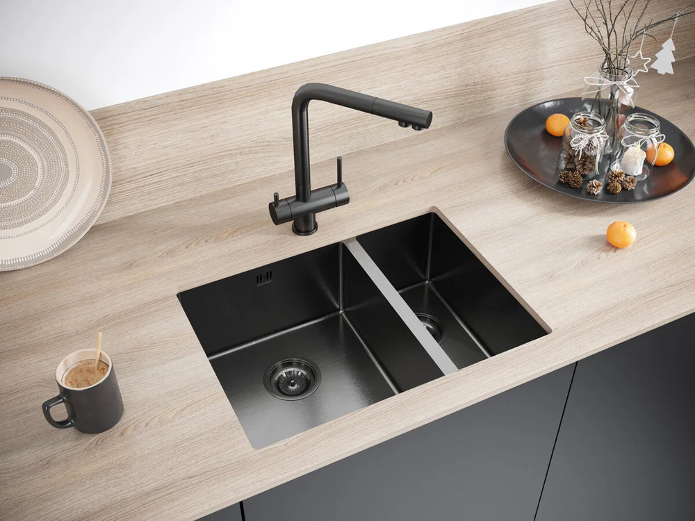 Мойка кухонная Paulmark Zusat PM225944-GML/R, 59 см, вороненая сталь, левая/правая