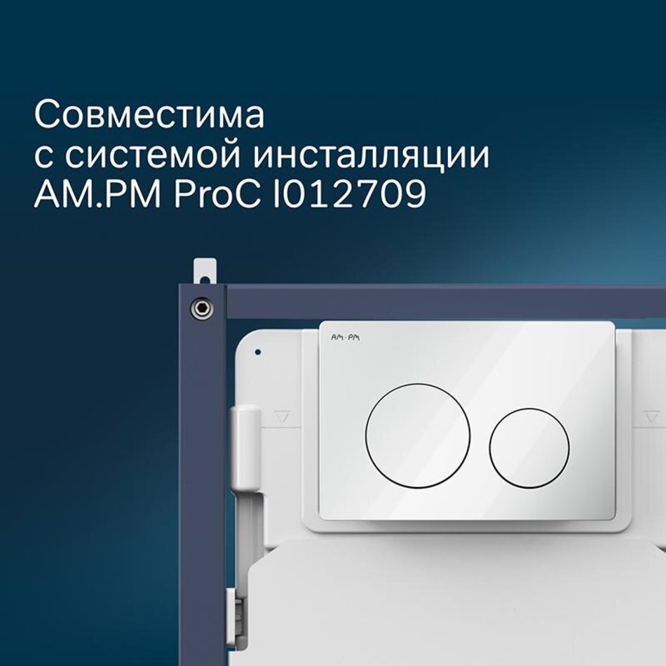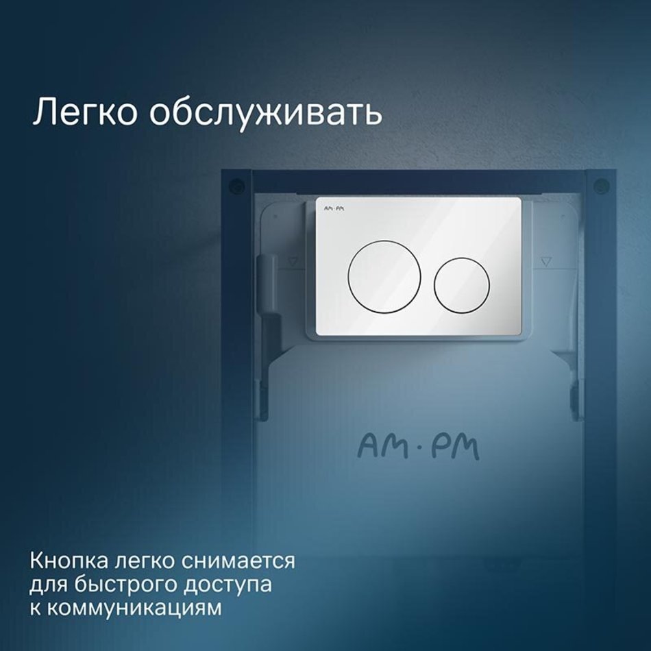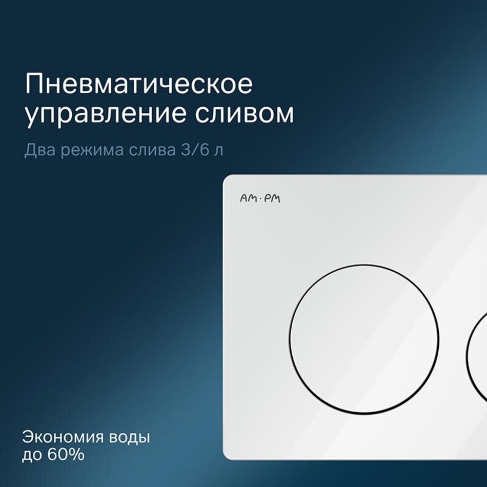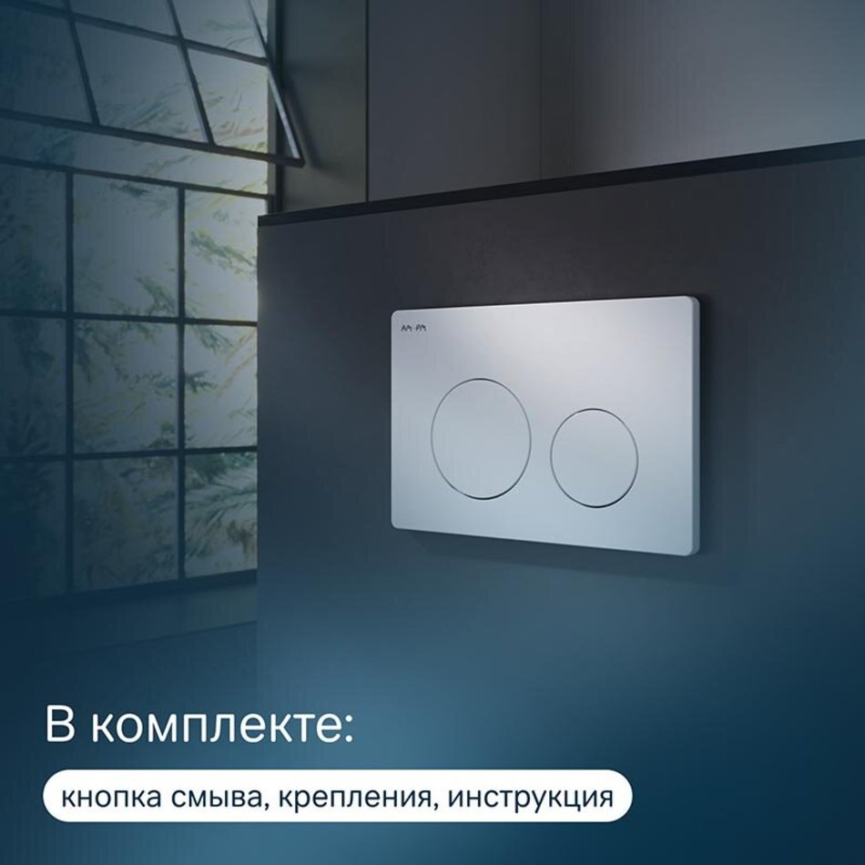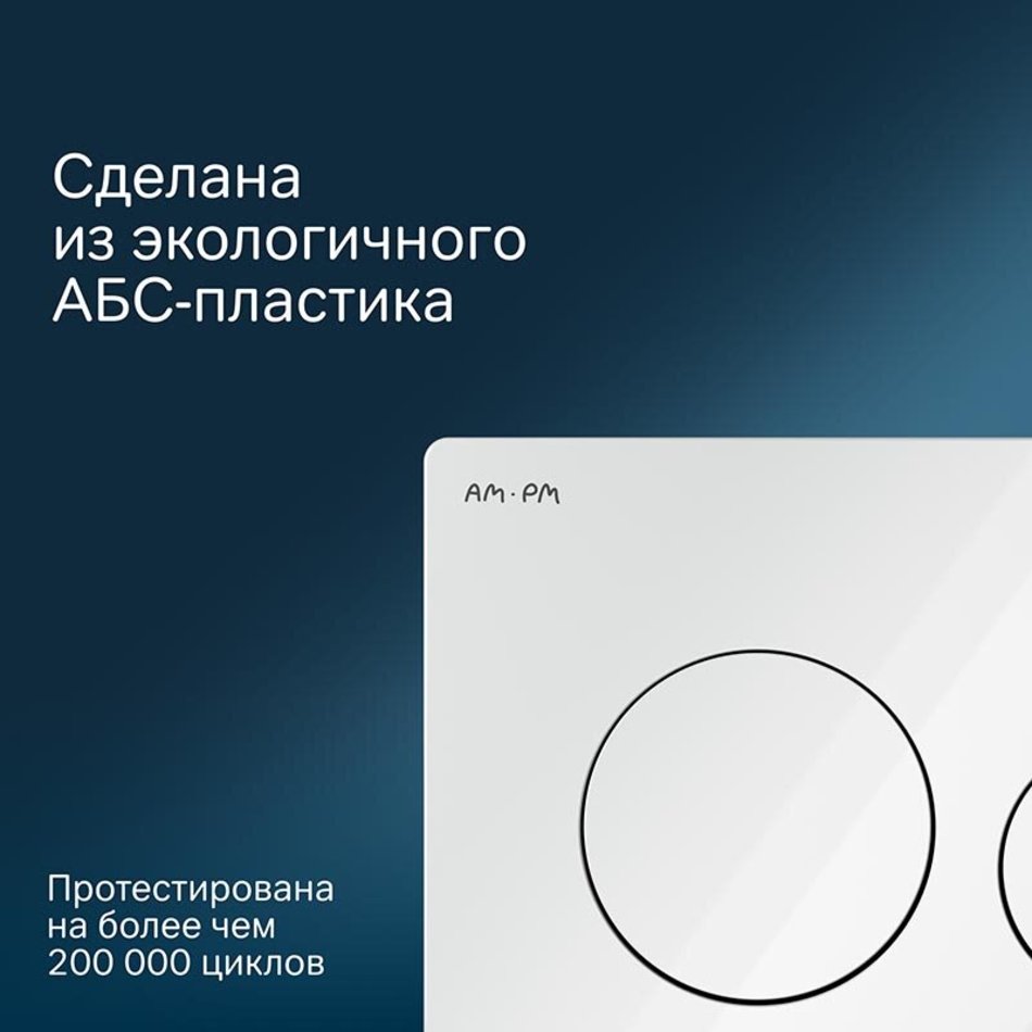 Двойной смыв - 3/6л. Механический принцип работы, все крепления в комплекте. Клавиша подходит для инсталляции AM.PM PrimeFit I012709