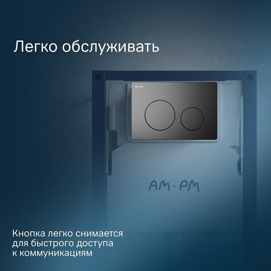 Двойной смыв - 3/6л. Механический принцип работы, все крепления в комплекте. Клавиша подходит для инсталляции AM.PM PrimeFit I012709