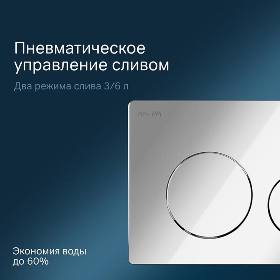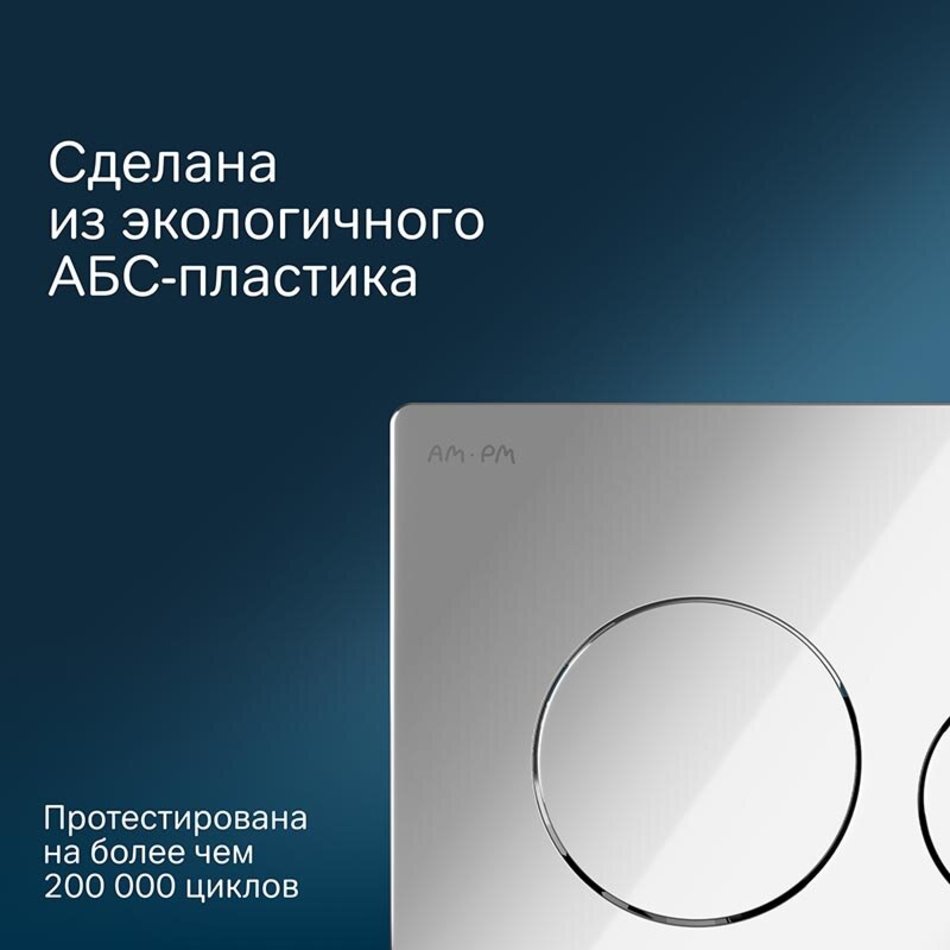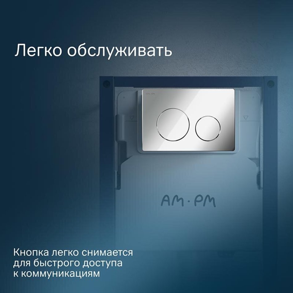 Двойной смыв - 3/6л. Механический принцип работы, все крепления в комплекте. Клавиша подходит для инсталляции AM.PM PrimeFit I012709