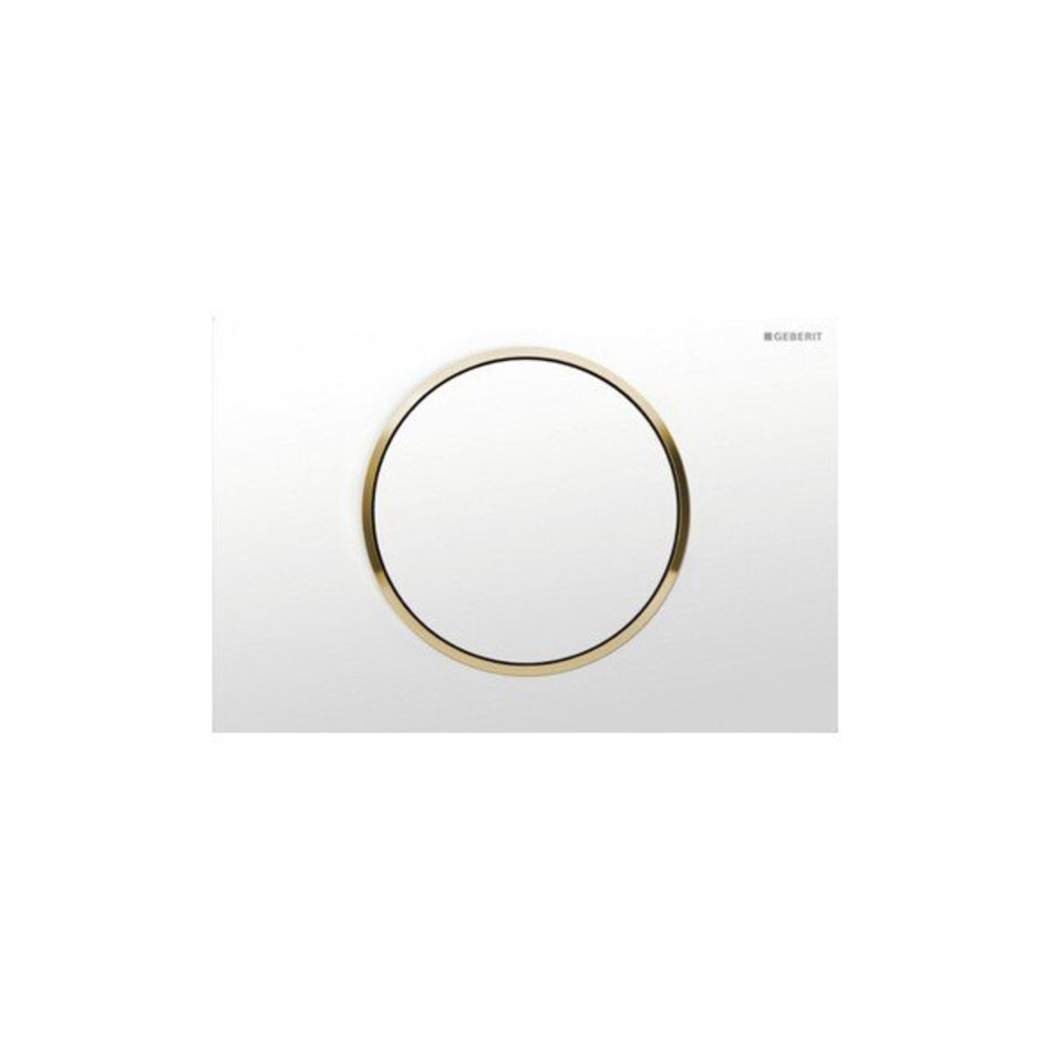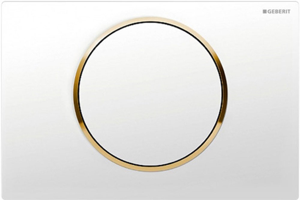 Клавиша Geberit Sigma Type 10 115.758.KK.5, одинарный смыв, рамка-белая/кнопка-белая/кольцо-золото