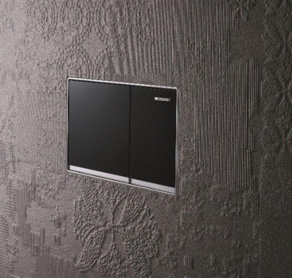 Клавиша Geberit Sigma Type 60 115.640.SJ.1, двойной смыв, цинковое литье, стекло черное