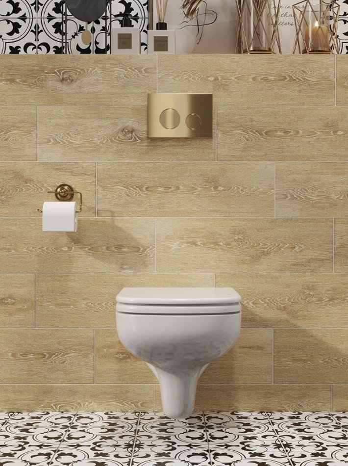 Золотая матовая пластиковая кнопка для двухуровнего механизма смыва.