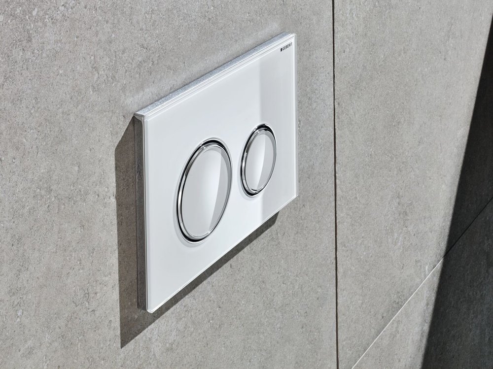 - Для задействования смыва из смывного бачка скрытого монтажа Geberit Sigma