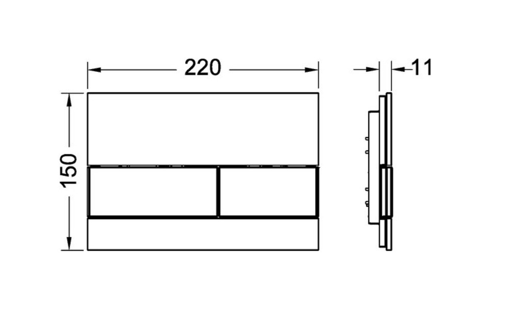 Панель смыва для смывных бачков TECE, фронтальная или верхняя установка. Плоская стеклянная панель смыва с двумя установленными на пружинах клавишами привода кулисного типа. Подходит для монтажа на уровне стены вместе с монтажной рамкой унитаза для монтажа на уровне стены (например, арт. 9240649). Совместима с контейнером для гигиенических таблеток.