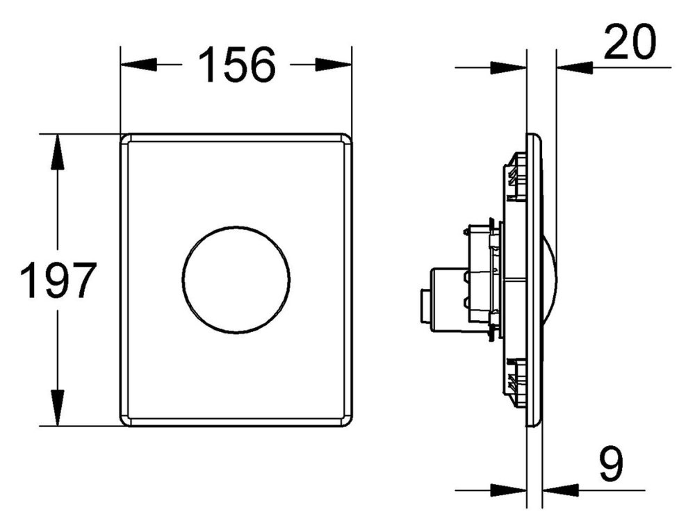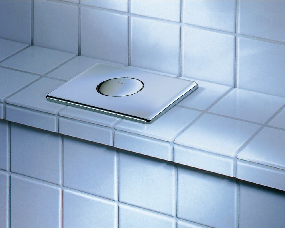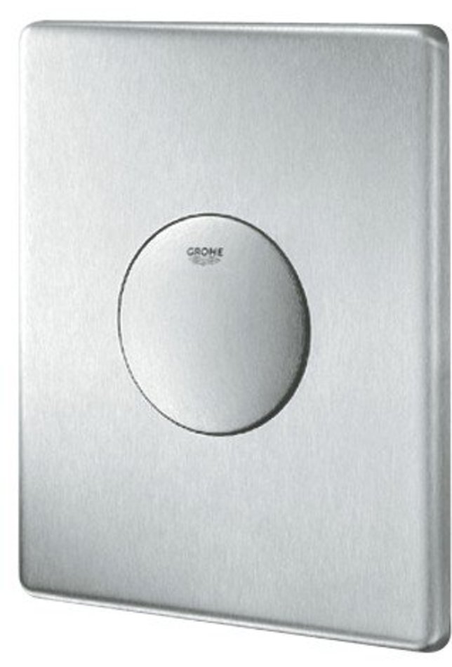 Накладная панель Grohe Skate ( Скейт ) 38672SD0, нержавеющая сталь, один объем смыва. для 1 объема смыва для пневматического сливного вентиля 156 x 197 мм кнопочное управление крепежная рама из пластика крепление скрытое