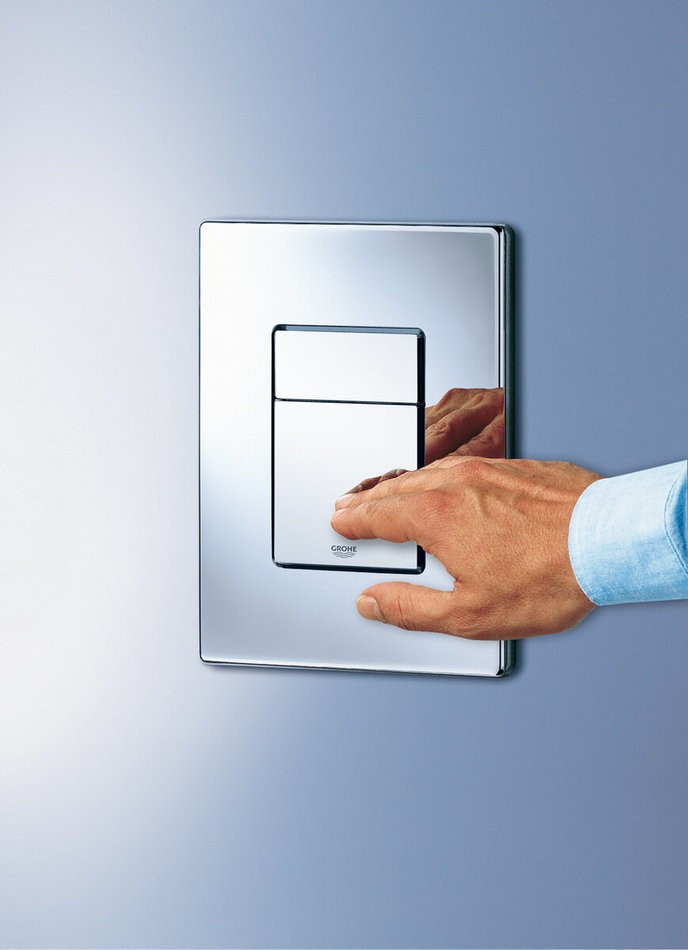 Кнопка смыва Grohe Skate Cosmopolitan, хром, 38732000С панелью смыва Skate Cosmopolitan, GROHE, мировой лидер по производству санитарных систем, предлагает настоящее произведение искусства в области технологий смыва! Эта панель смыва станет идеальным завершающим штрихом в дизайне любой современной туалетной комнаты. Ее размер составляет 156 x 197 x 10 мм, а ослепительная хромовая поверхность GROHE StarLight надежна и ее легко чистить. Панель также экологична! Двойная система смыва предлагает вам выбор объема смыва: 3 или 6 литров (или 3 и 4,5 литра для некоторых унитазов). Кроме того, смыв возможно остановить с помощью маленькой кнопки. Встроенная технология GROHE EcoJoy сокращает расход воды до 50%! Установка панели, которая требует наличие стандартного ревизионного окошка, очень проста и не требует специальных инструментов. Панель смыва GROHE Skate Cosmopolitan - обновление туалетной комнаты, которое сочетает в себе изысканный стиль и высочайшее качество!