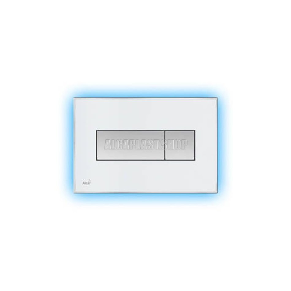 Кнопка управления AlcaPlast M1470-AEZ111 с цветной пластиной, светящаяся кнопка белая, свет голубой