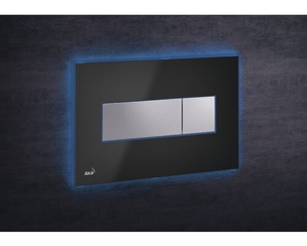 Кнопка управления AlcaPlast M1474 - AEZ111 с цветной пластиной, светящаяся кнопка черная глянцевая, свет голубой
