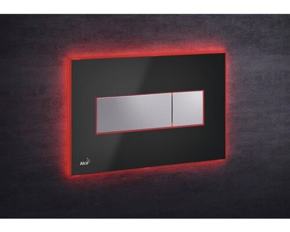 Кнопка управления AlcaPlast M1474 - AEZ113 с цветной пластиной, светящаяся кнопка черная глянцевая, свет красный
