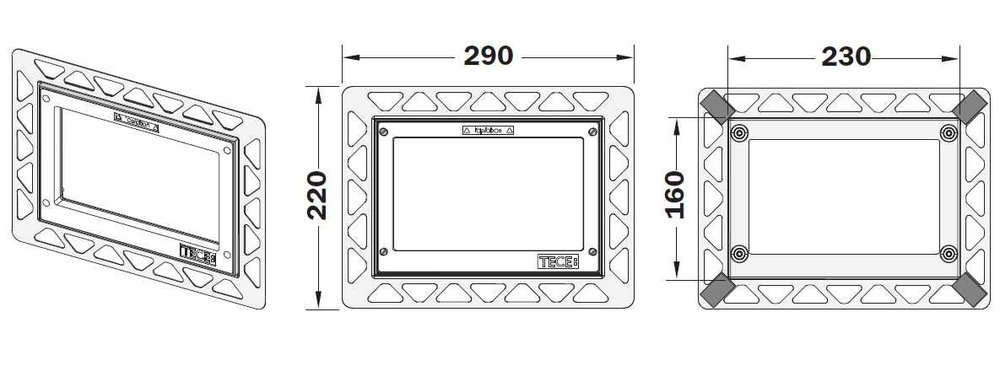 Совместима с модулями для унитазов для сухого монтажа, а также с конструкцией для кирпичных стен вместе с системой защиты застенного пространства TECEbox (артикул 9030029). Для создания ровной кромки выреза в плитке используйте станок гидроабразивной резки.