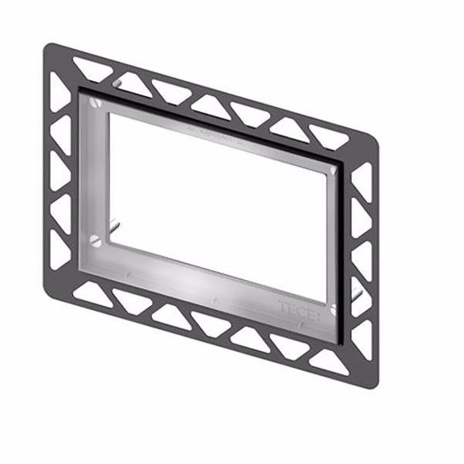 Монтажный комплект для установки стеклянных панелей смыва унитаза TECEloop/TECEsquare, TECElux Mini, а также TECEnow на уровне стены. Рамка для облицовки стеновой плиткой с регулированием глубины в диапазоне 5–18 мм (18–33 мм с использованием регулировочных болтов — арт. 9820181). В комплект входит инструмент для монтажа/демонтажа панели смыва.