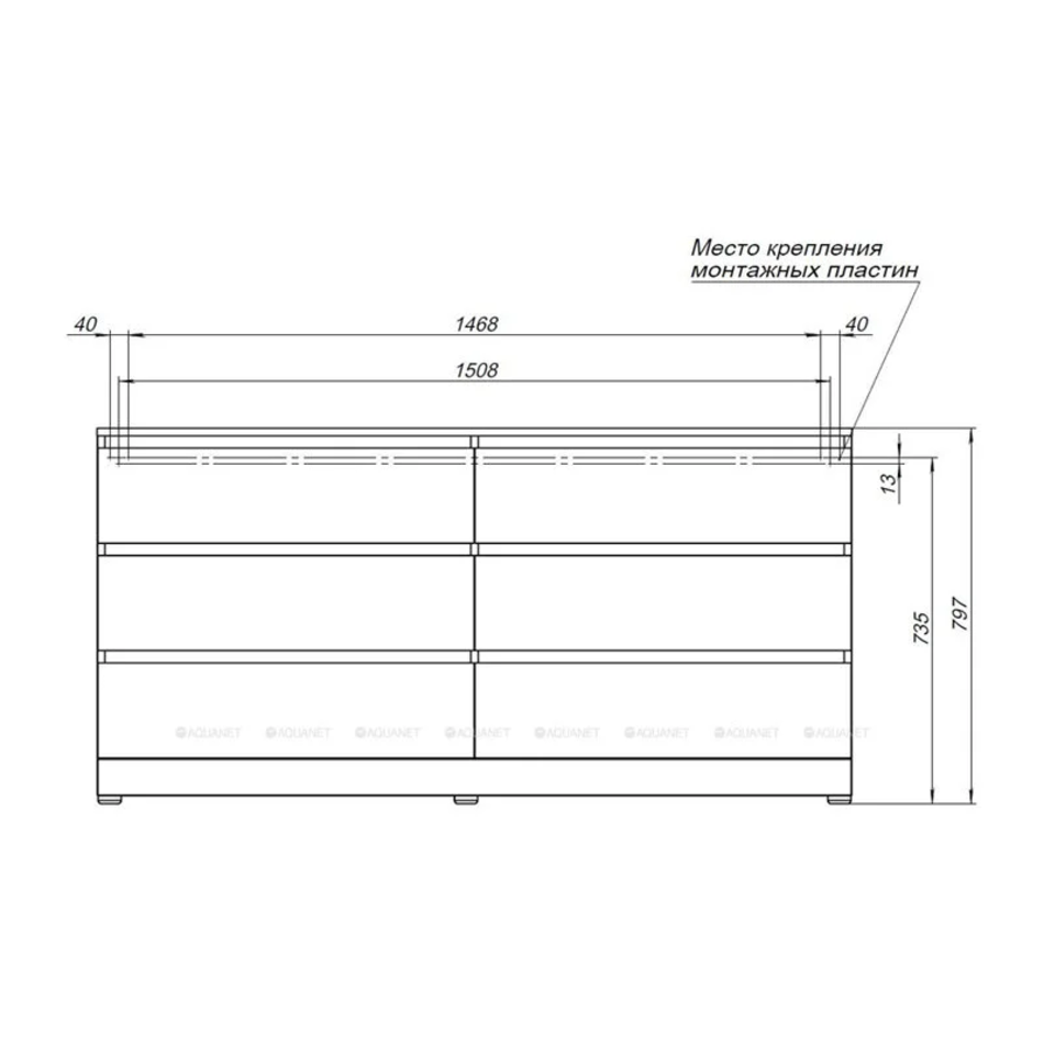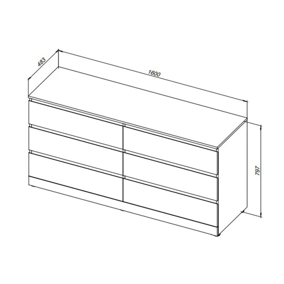 Комод Aquanet Сканди, 160 x 48.3 х 79.7 см, напольный, 6 ящиков, дуб эдгрейн, 00302547