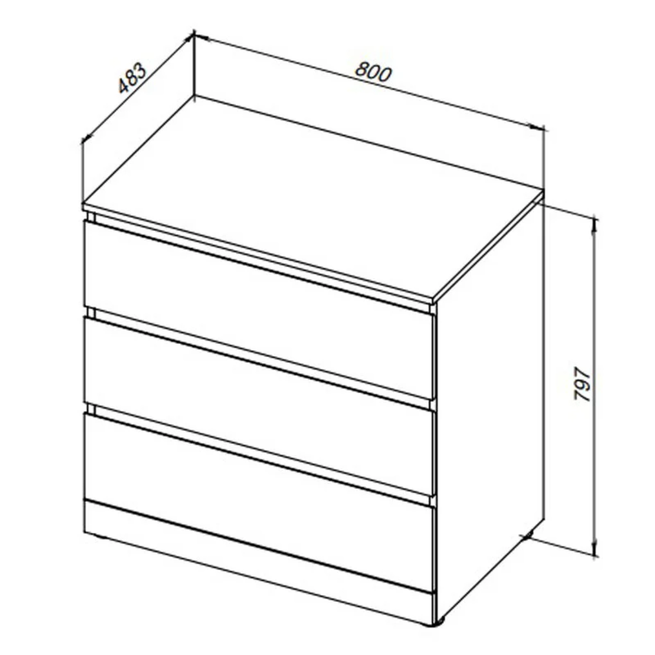 Комод Aquanet Сканди, 80 x 48.3 х 79.7 см, напольный, 3 ящика, дуб крафт, 00302544