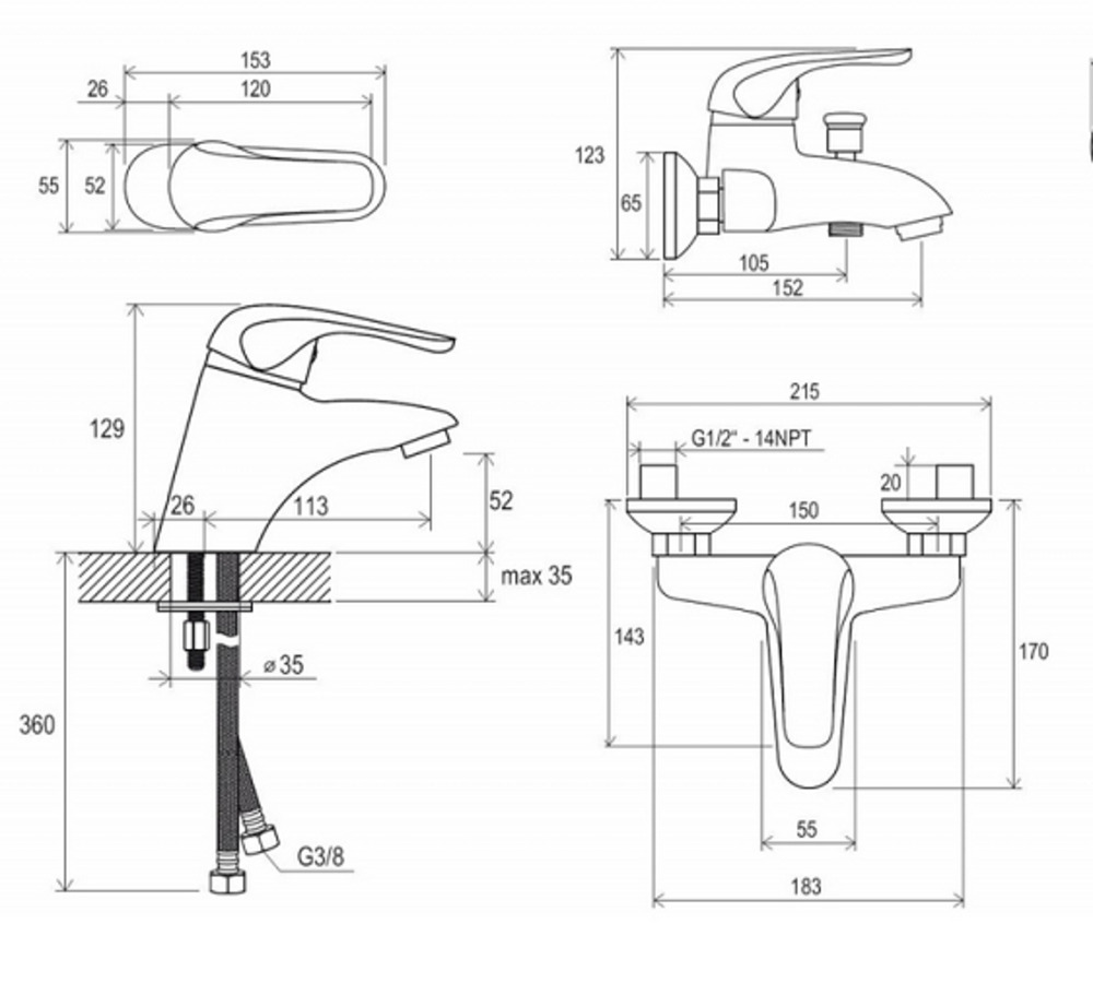 Комплект смесителей 5 в 1 Ravak Set Rosa 70508017 , хром