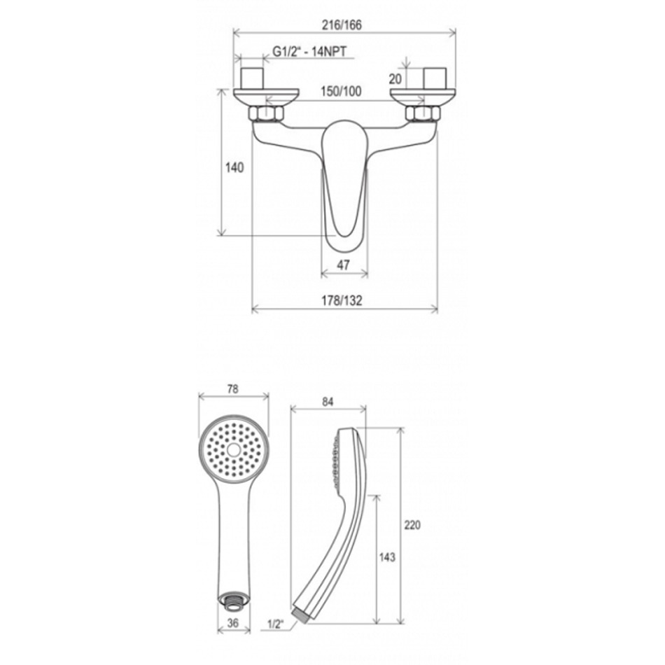 - Длина излива