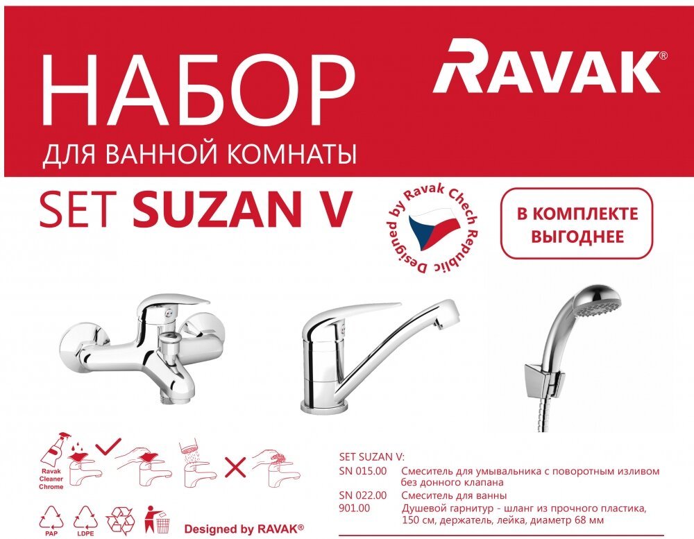 Комплект смесителей 5 в 1 Ravak Set Suzan 70508018 V, хром
