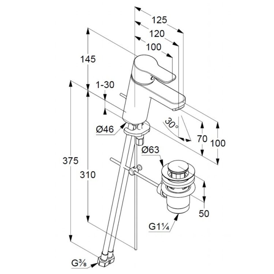 - Смеситель для раковины Kludi Pure&Easy 70 372820565 с донным клапаном