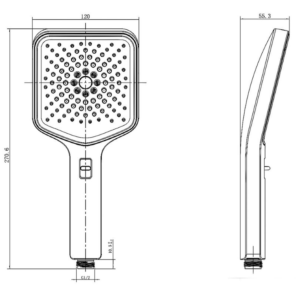 - Размер ручного душа (ШхВ): 120х271 мм.