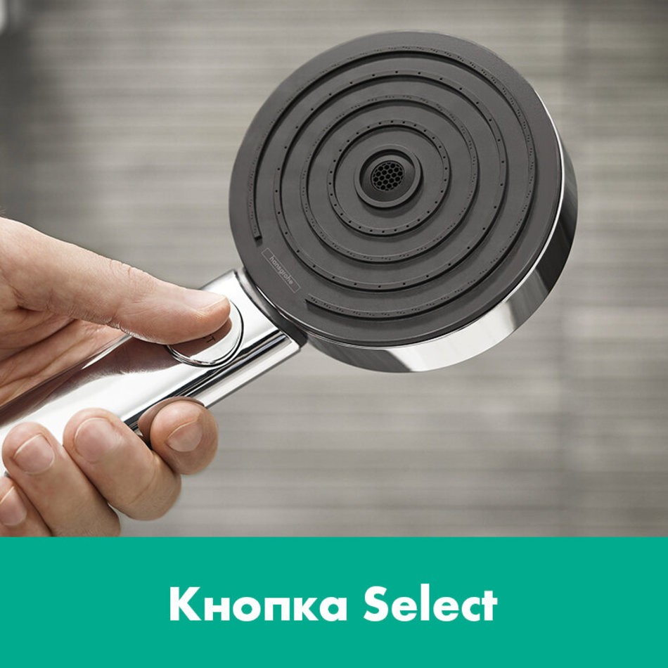 Душевая лейка Hansgrohe Pulsify 24100000 Select S, 3 режима струи, хром глянцевый, диск графит
