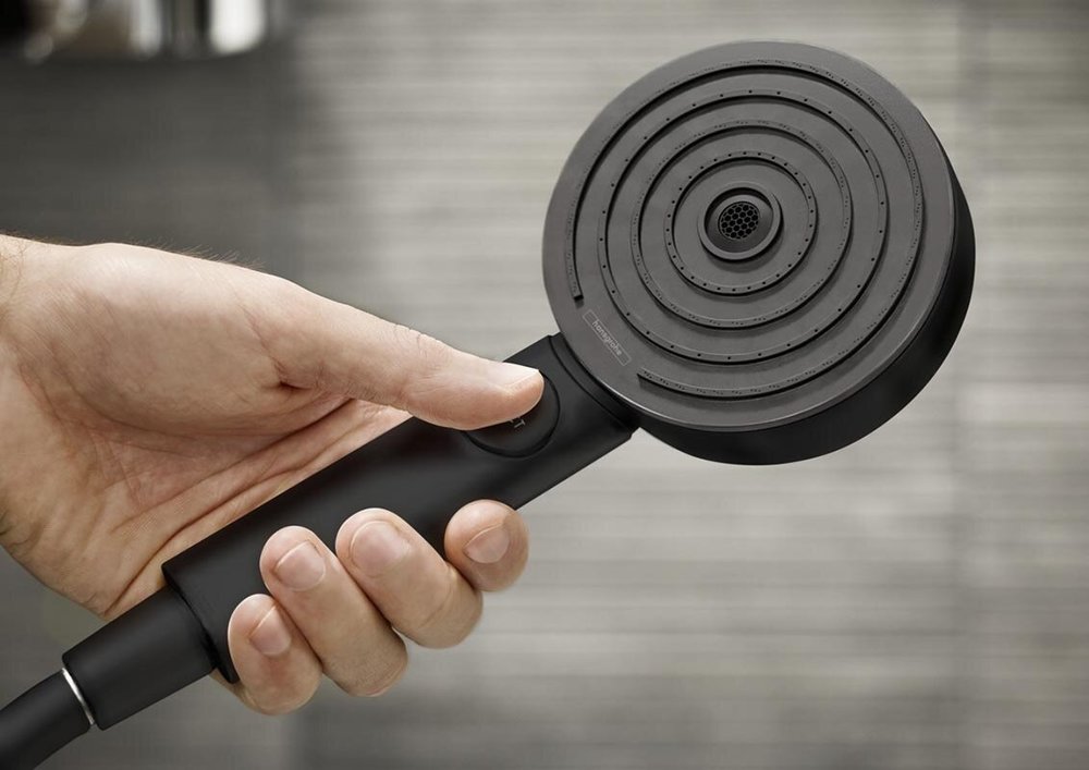 Душевая лейка Hansgrohe Pulsify 24101670 Select S, EcoSmart 3 режима струи, черный матовый, диск графит