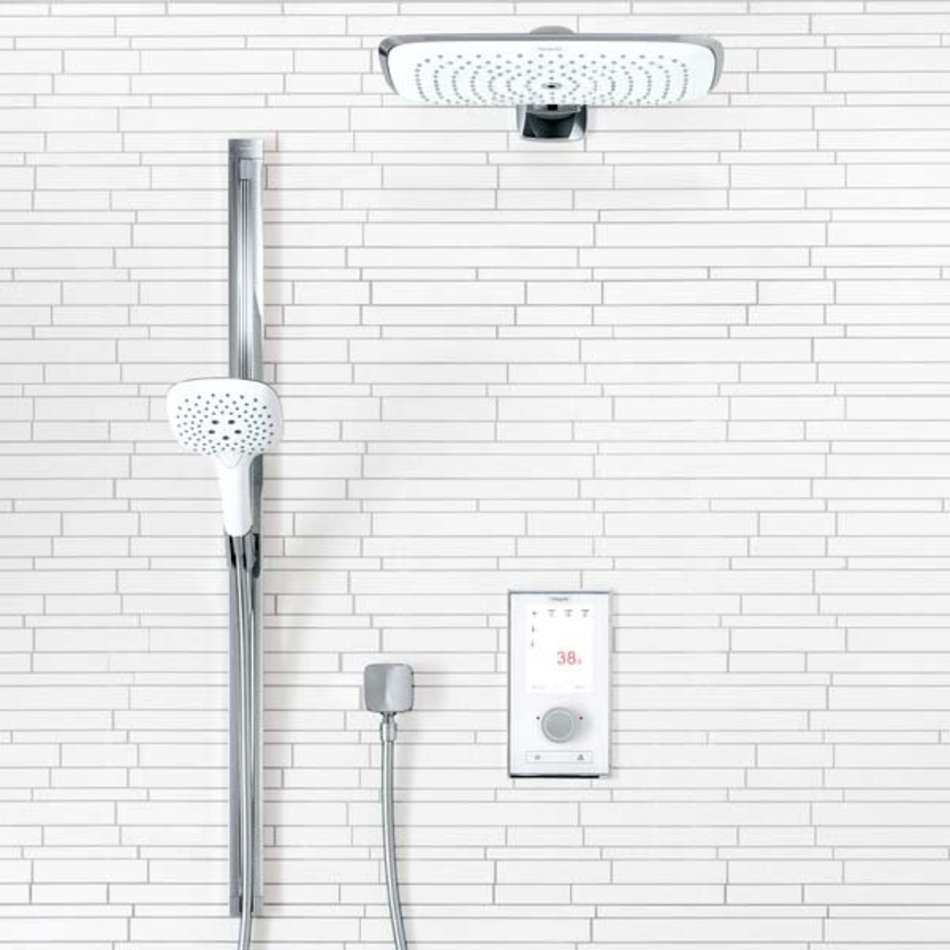 Ручной душ PuraVida 3jet с вытянутым силуэтом и белой душевой лейкой, разработанный студией Phoenix Design, расставляет в ванной комнате эстетические акценты. Он предлагает на выбор три типа струи: плотно струящееся, интенсивно бодрящее или приятно расслабляющее удовольствие под душем.