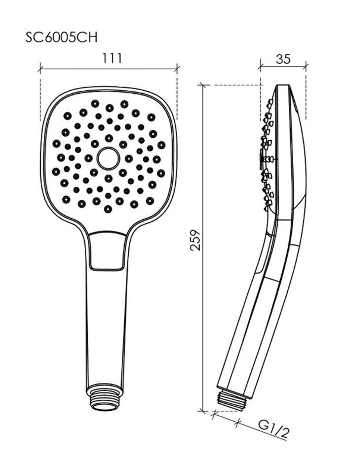 Душевая лейка Sancos Magic, кнопочное управление, 110 x110 мм, 3 режима, цвет хром/белый, арт. SC6005CH