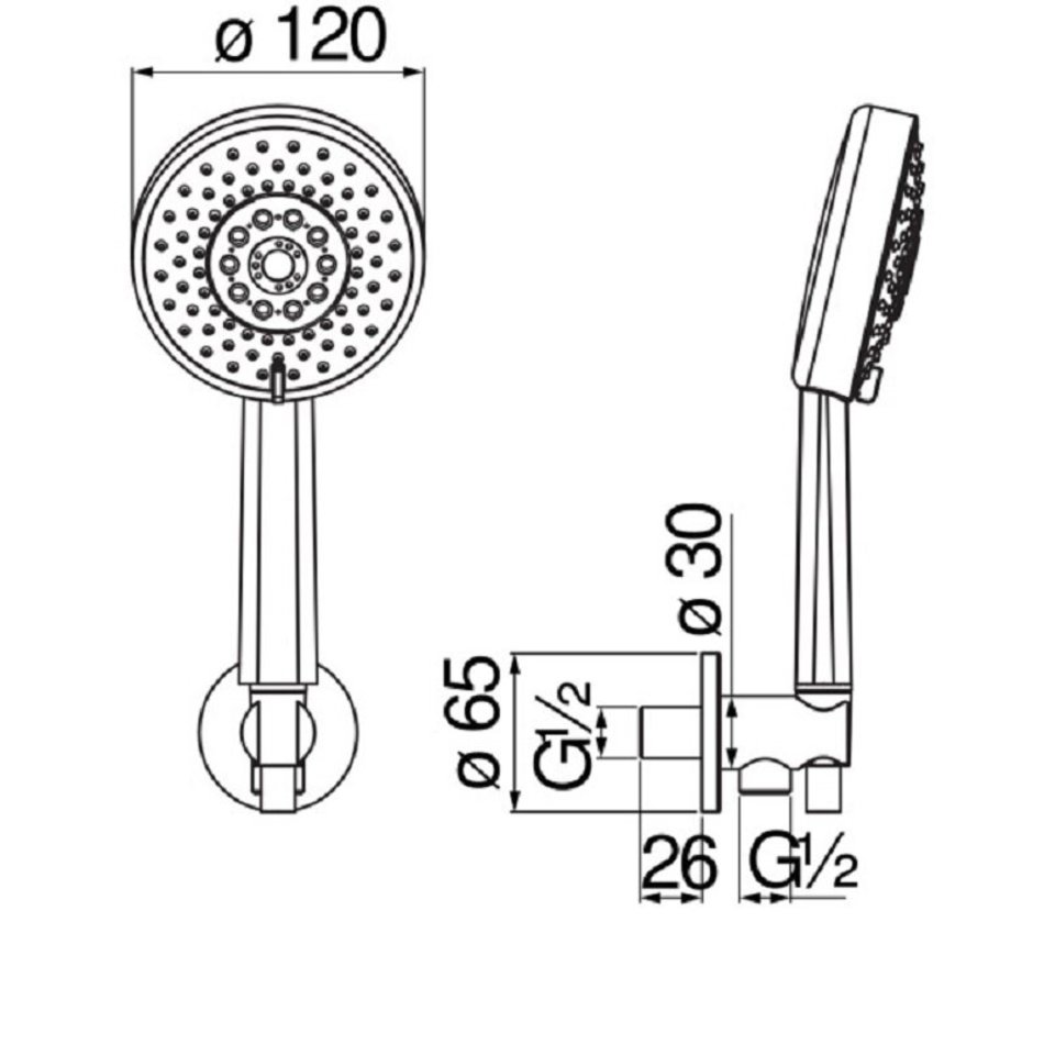 - Количество режимов струи, ручной душ : 3.