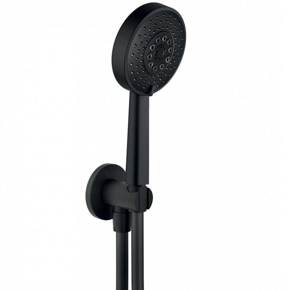 Душевой гарнитур (чёрный). 1/2” шланговое подключение. Фиксированный держатель для ручного душа. 3-струйный ручной душ и шланг 150 см. Отделка - Velvet black.