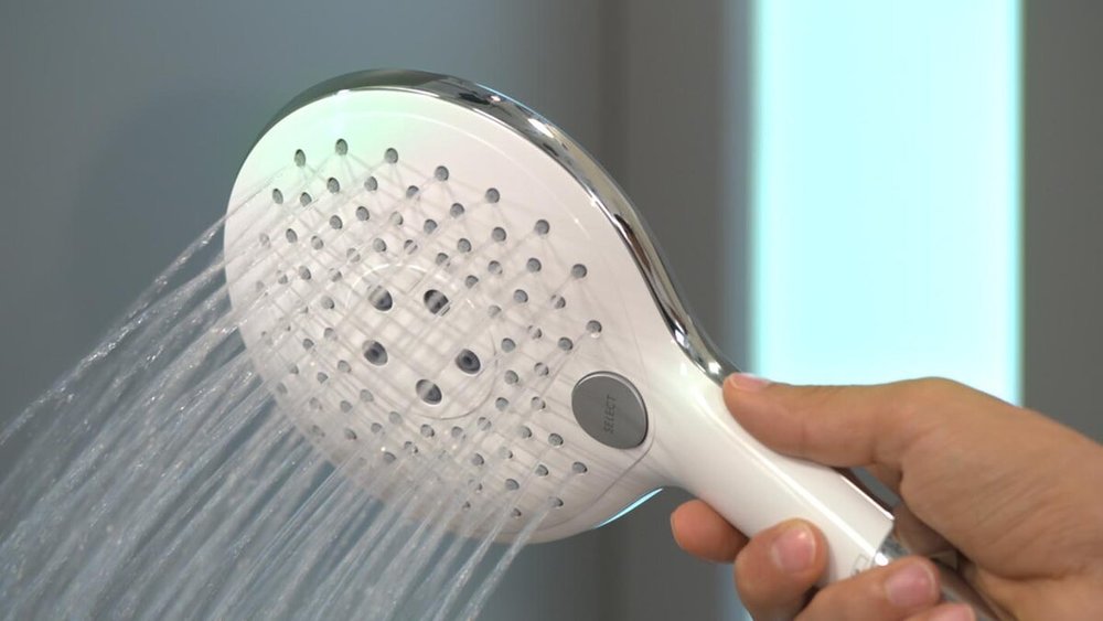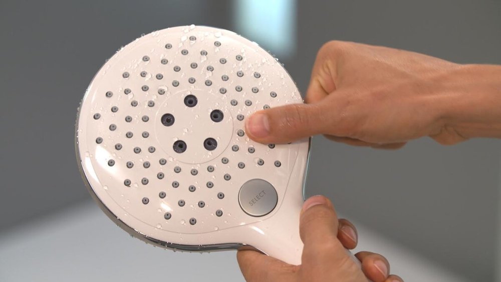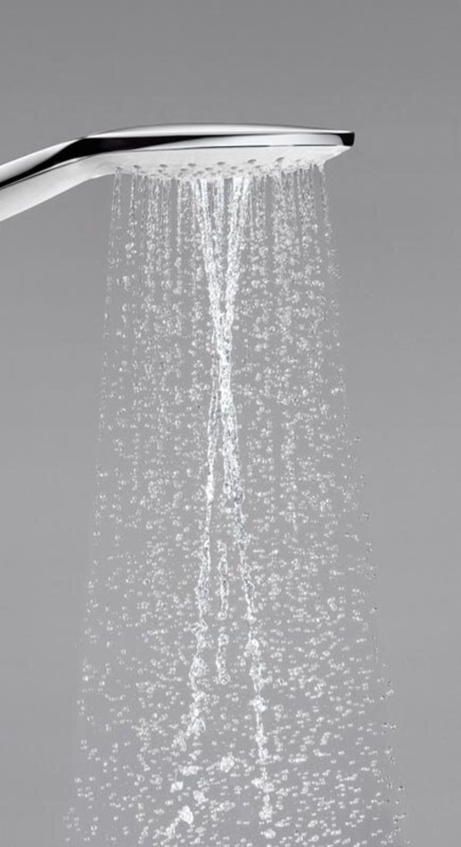 Ручной душ Raindance Select S 150 3jet с хромированными поверхностями, белым душевым диском и гармонично округлым силуэтом XXL доставляет радость в чистом виде и меняет типы струи нажатием кнопки: он дарит расслабляющее, бодрящее или освежающее удовольствие под душем.