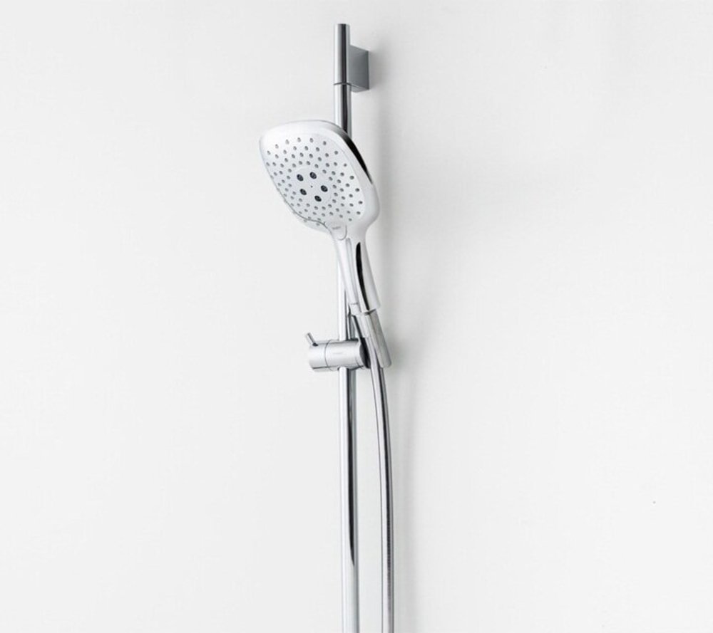 Ручной душ Raindance Select E 150 3jet EcoSmart с хромированными поверхностями, белым душевым диском и мягким прямоугольным силуэтом XXL доставляет радость в чистом виде, одновременно снижая расход воды: он обеспечивает бережное обращение с водой при полном комфорте принятия душа с тремя типами струи.