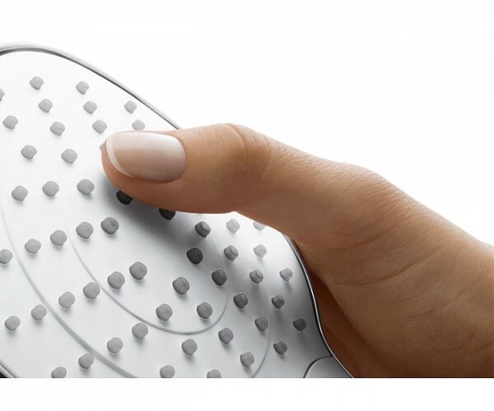 Ручной душ Croma Select S Vario с хромированными поверхностями, белым душевым диском и гармонично округлым силуэтом доставляет радость в чистом виде и предлагает на выбор три типа струи нажатием кнопки: он дарит полное расслабляющее, интенсивное или сильное витализирующее удовольствие под душем.