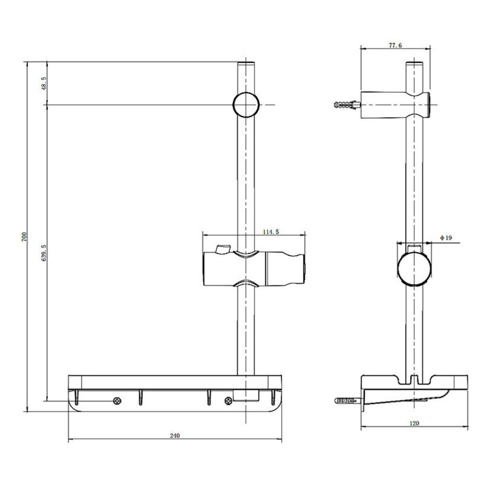 - Держатель ручного душа регулируемый по высоте, поворотный.