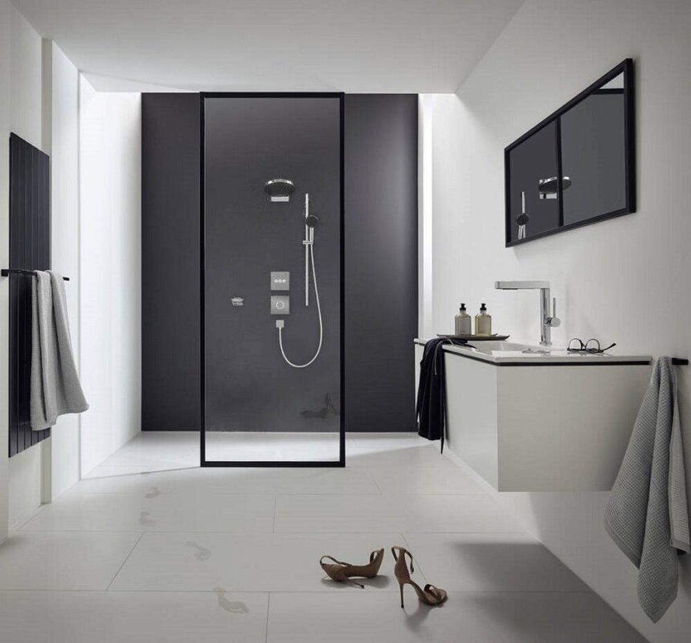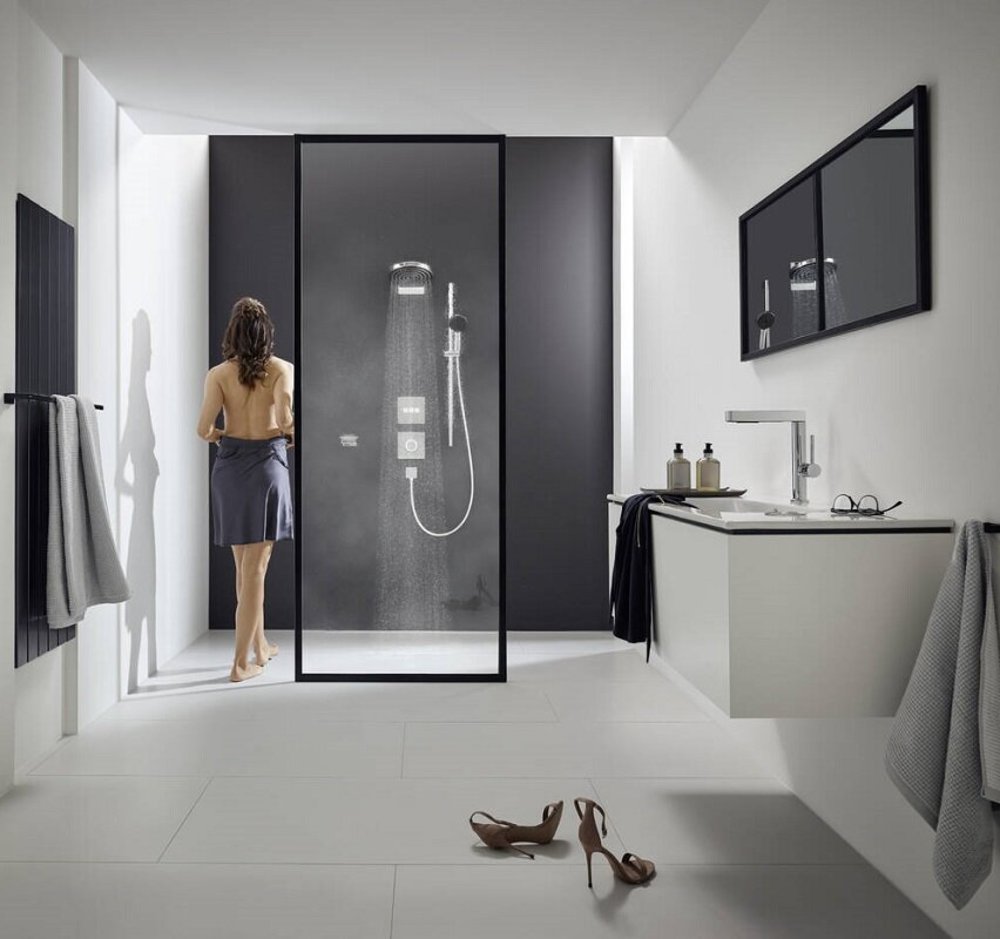 • держатель для ручного душа регулируемый по высоте с внешней кнопкой выбора