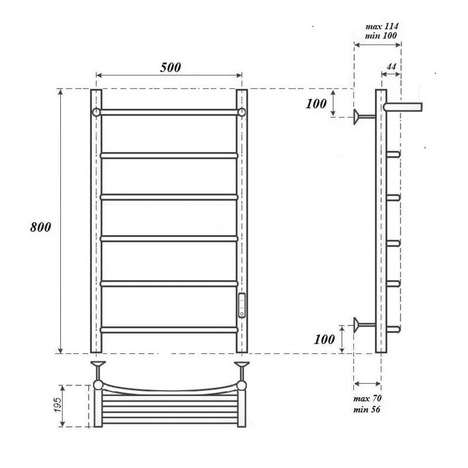 Полотенцесушитель электрический Margaroli Sereno 587/6 BOX, высота 73.3 см, ширина 57 см