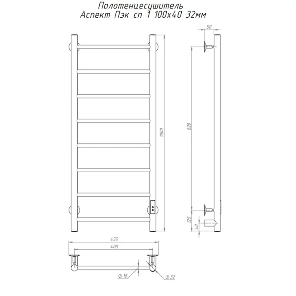 Полотенцесушитель Тругор Аспект Пэк сп 1 100х40 32 мм, ширина 40 см, высота 100 см, хром