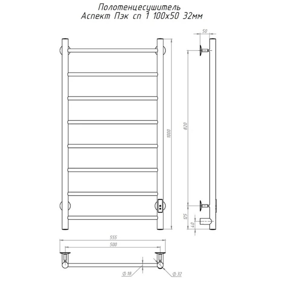 Полотенцесушитель Тругор Аспект Пэк сп 1 100х50 32 мм, ширина 50 см, высота 100 см, хром