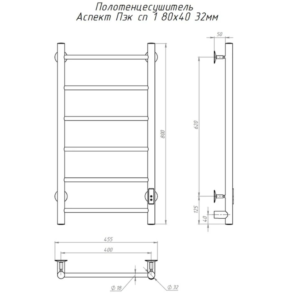 Полотенцесушитель Тругор Аспект Пэк сп 1 80х40 32 мм, ширина 40 см, высота 80 см, хром